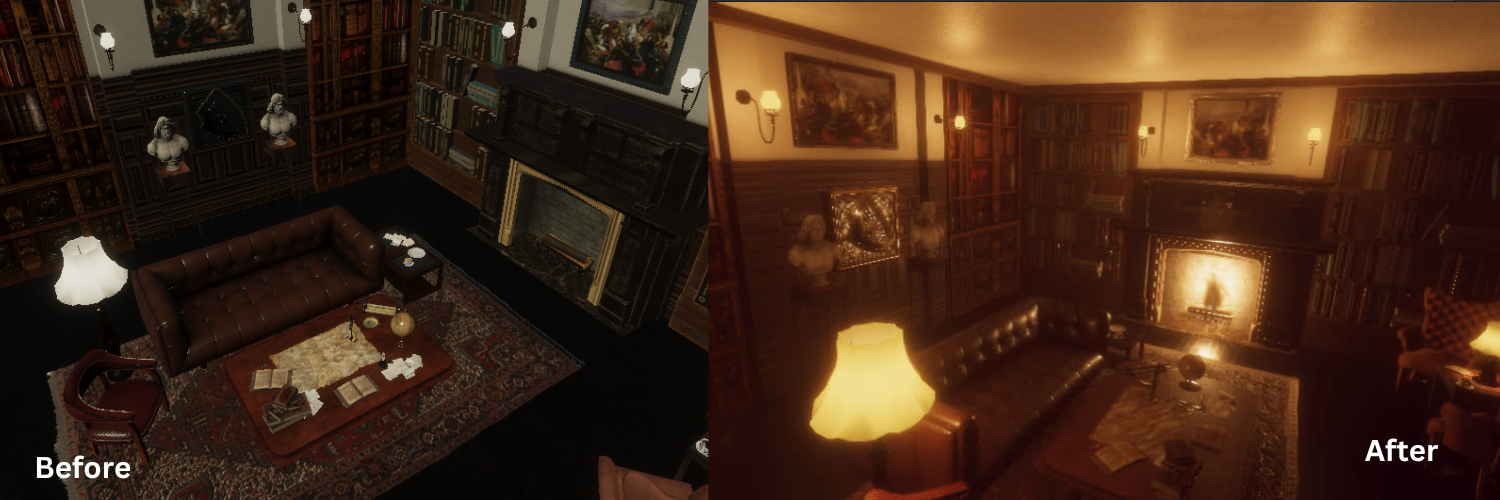 Post-processing bloom in-progress: An in-progress view demonstrating the application of bloom post-processing to enhance light softness, warmth, and visual cohesion.